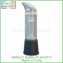 Nous vous présentons ce petit bubbler portatif autoportant "Shorty" pour vaporisateurs Mighty et Mighty+ et Crafty et Crafty+. On dit bien autoportant car il s'agit d'un petit filtre à eau qui n'a pas besoin d'un adaptateur ou connecteur supplémentaire et est à la fois un embout buccal plus complexe et il intègre une partie filtration à l'eau de la vapeur. L'embout bubbler short se met directement sur le vaporizer Mighty ou Crafty et on vaporise avec ces derniers comme si c'était un simple embout buccal, on tient donc le vapo à l'endroit au lieu de le tenir à l'envers comme cela est le cas quand on connecte l'un de ces deux vaporizers sur un bubbler ou bong classique, de table ou une véritable water pipe de maison.